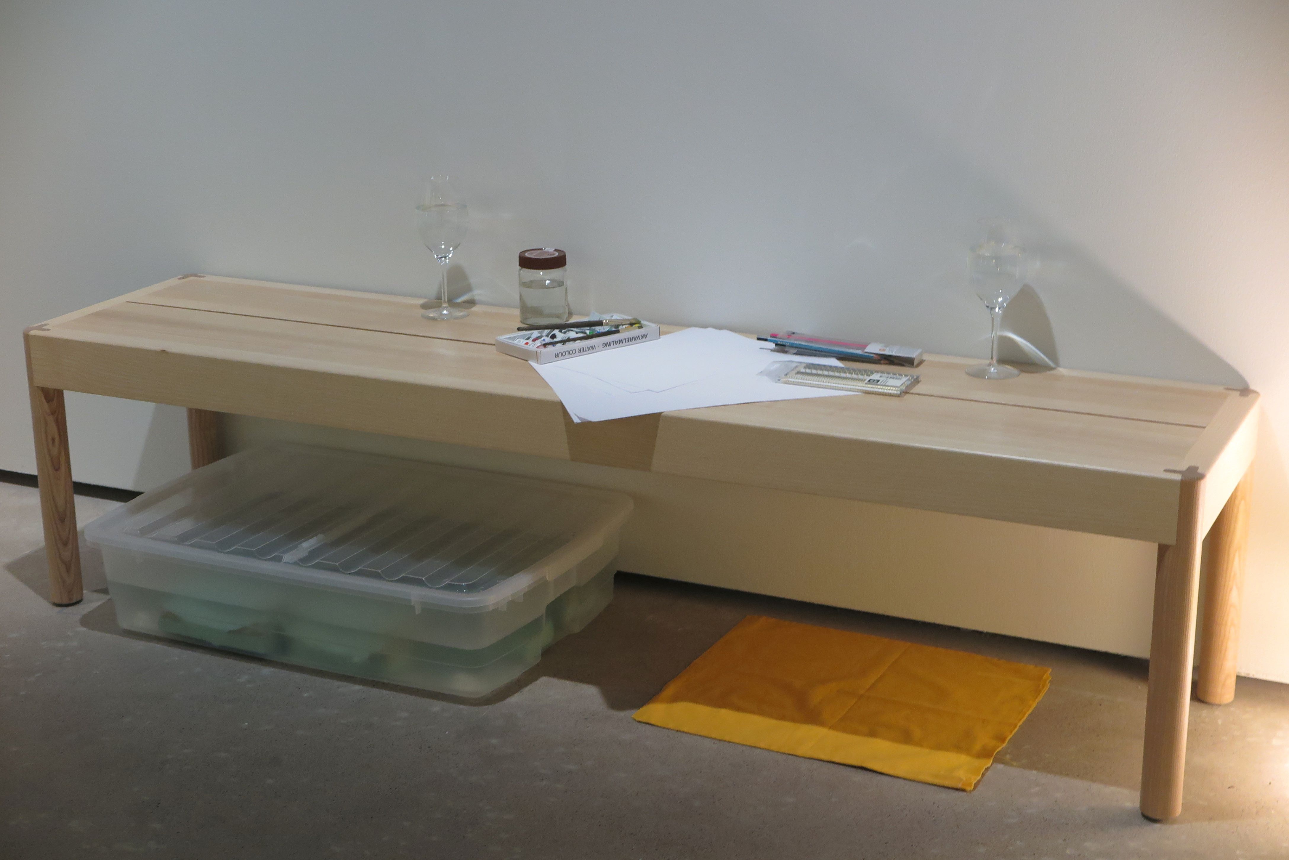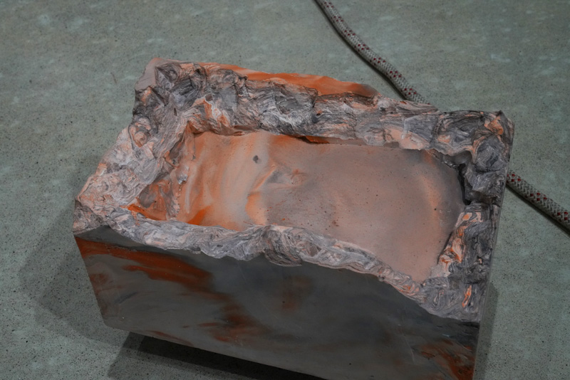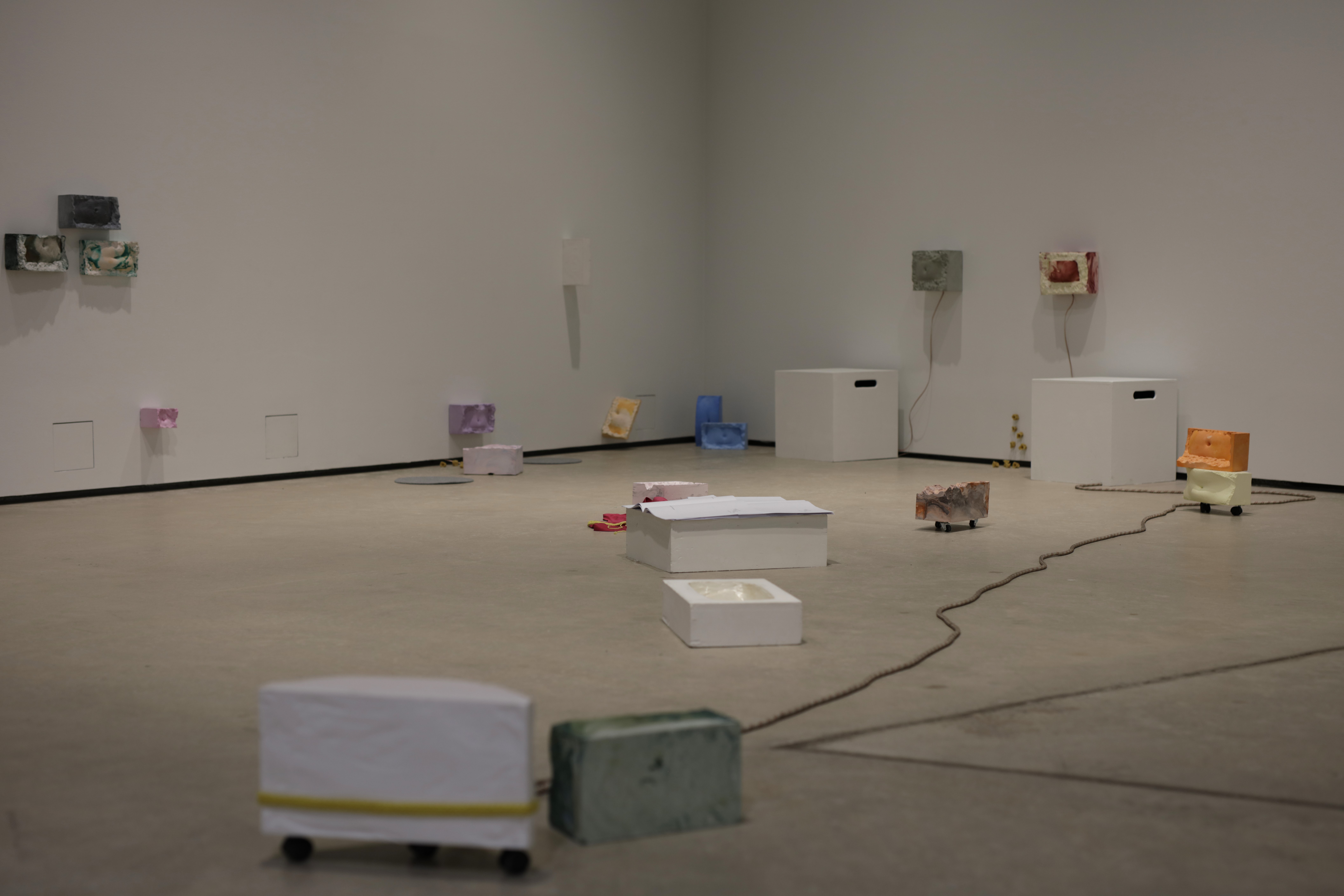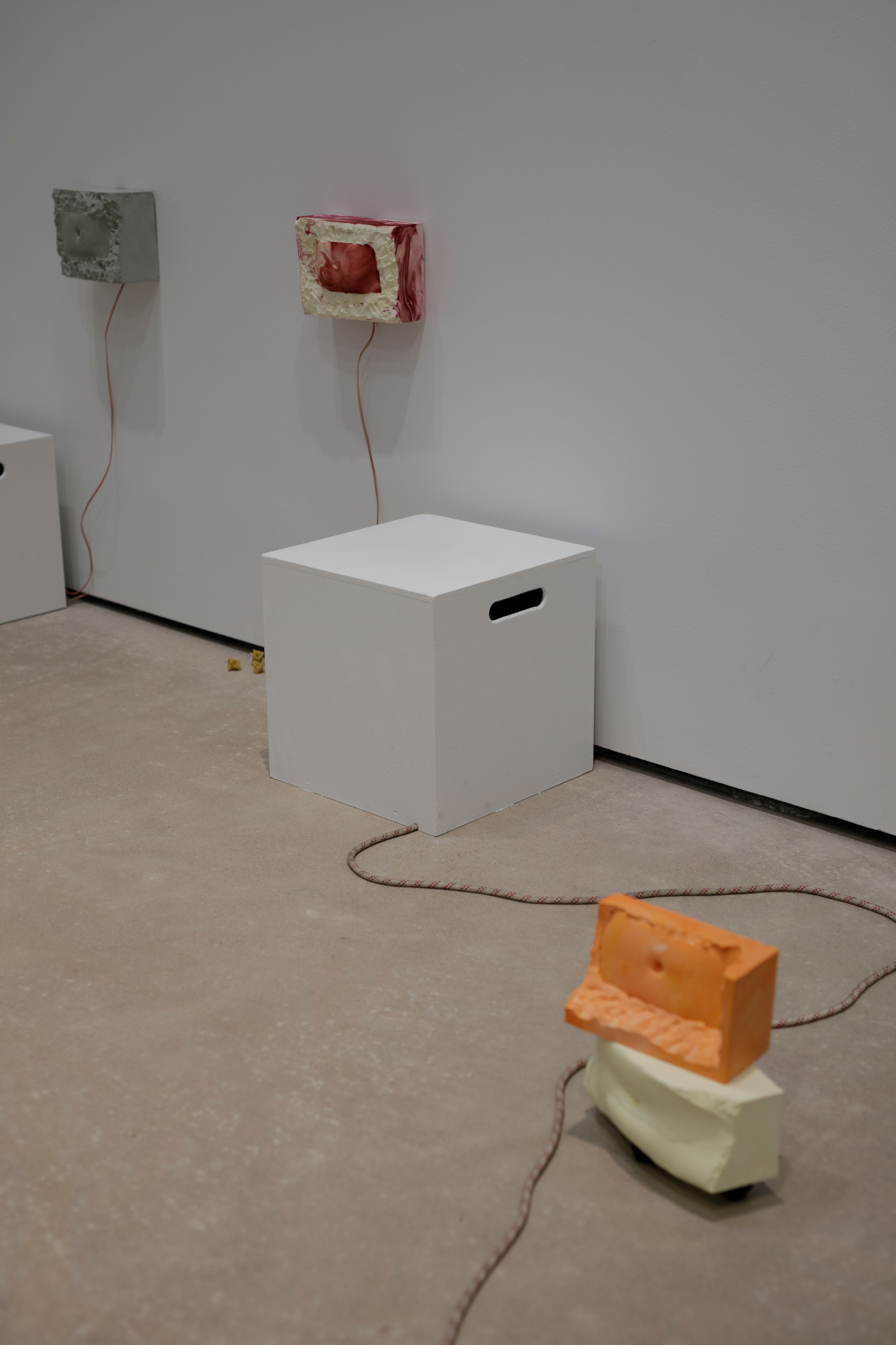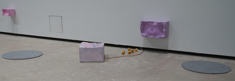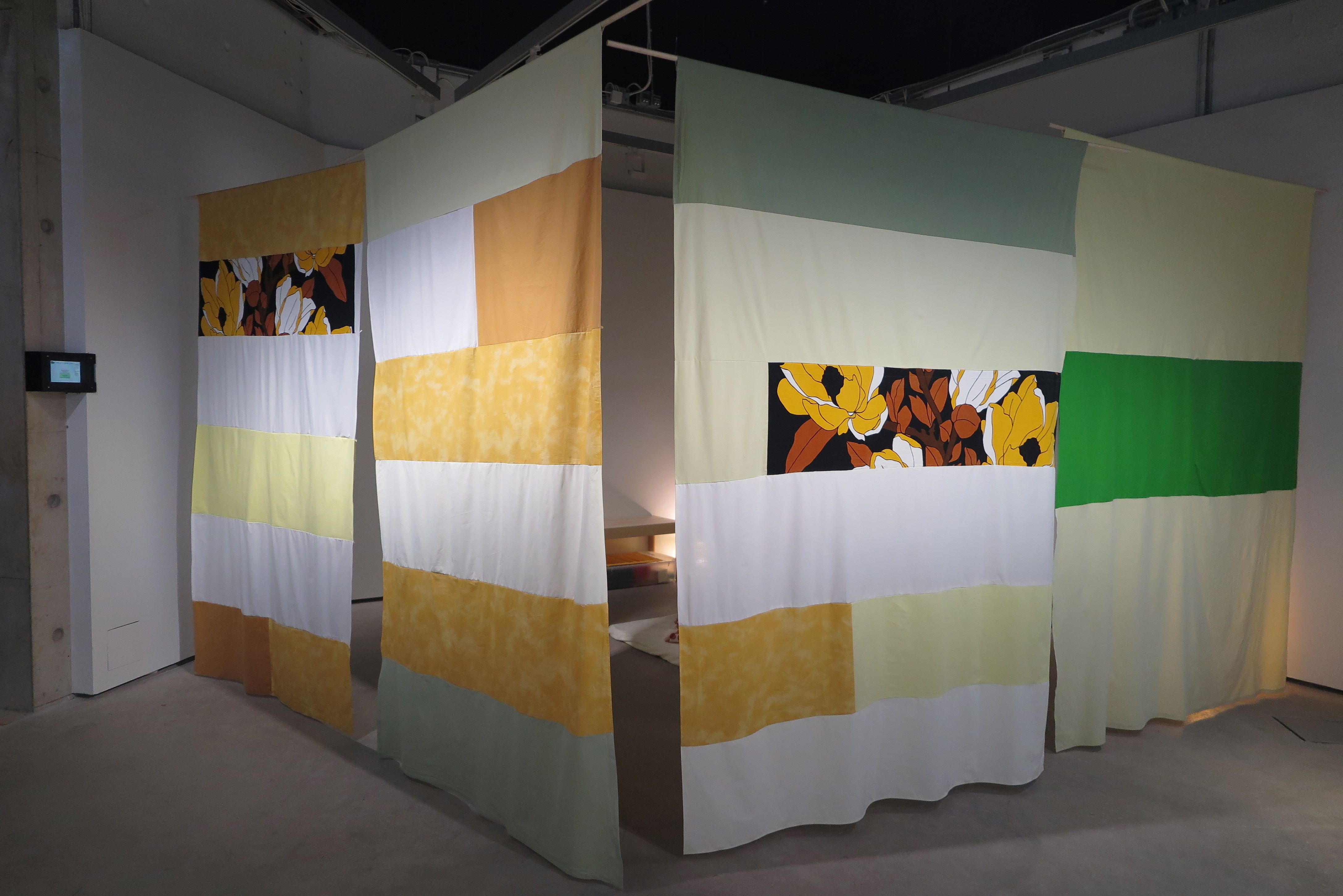 The installation was accompanied by a performance Napapiiri – Navel Circle which was an expedition led by five people from the group inside the Academy of Fine Arts. The work had ritual elements and it invited the audience to co-compose their own journey with the themes of care, touch and connectedness while traveling together alongside the other art works of the exhibition. The performance was rich in its details bringing together carefully considered elements (among other things edible navel sculptures) from different disciplines that enforce and support Lin’s corporeal thinking and aims as an artist.
