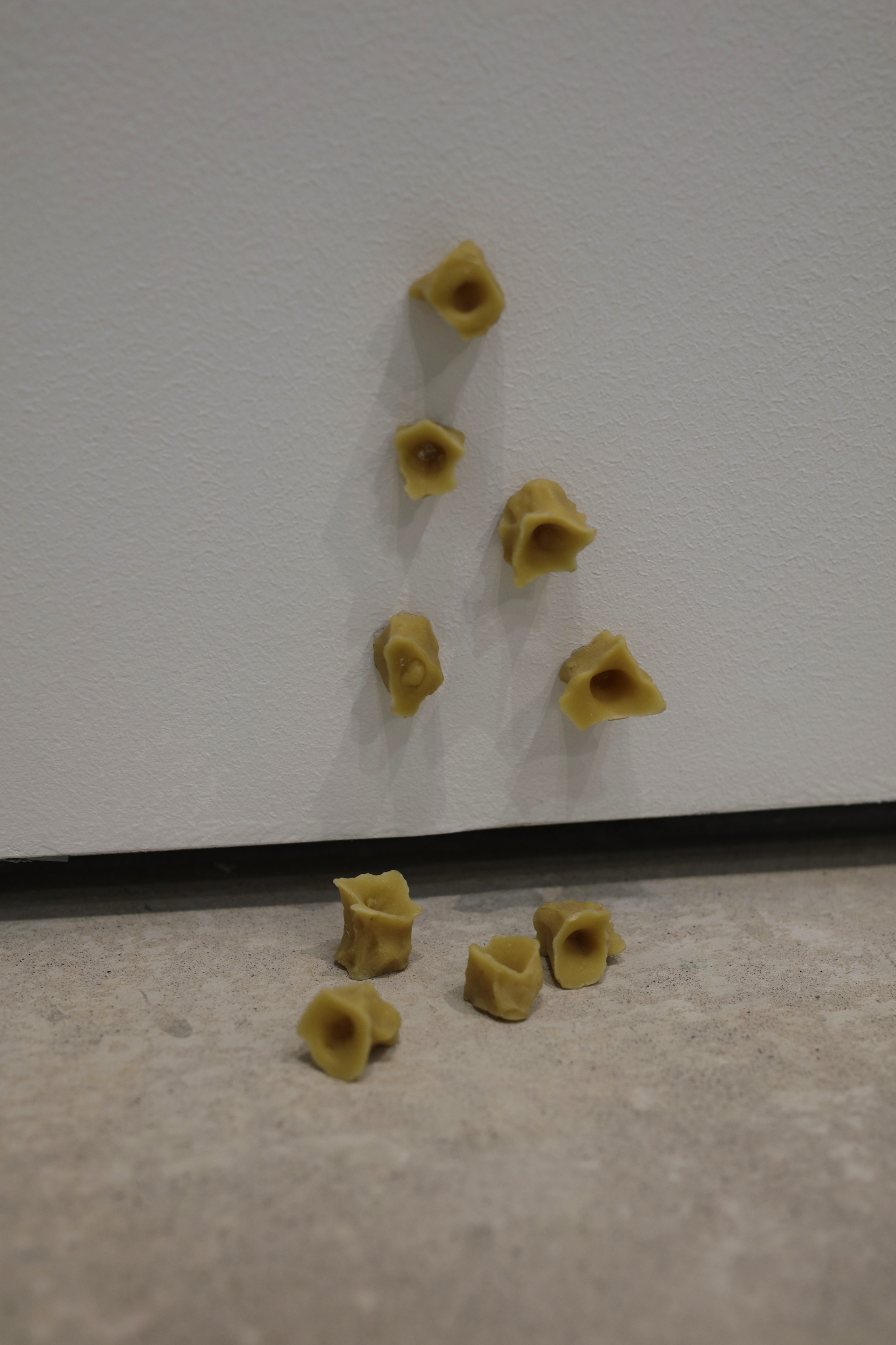 The group was gathered through an open invitation letter where queer people were invited to participate in the joint exploration of the navel. In addition to the group meetings, there were one-to-one meetings with the convener of the project, Lin Da, to do navel mold casting where, among other things, the memories associated with the navel and the role of the navel in each person’s life were discussed. The navel plaster casting and cast beeswax were displayed with sound recordings and text in the Kuvan Kevät 2023 group exhibition at Academy of Fine Arts.